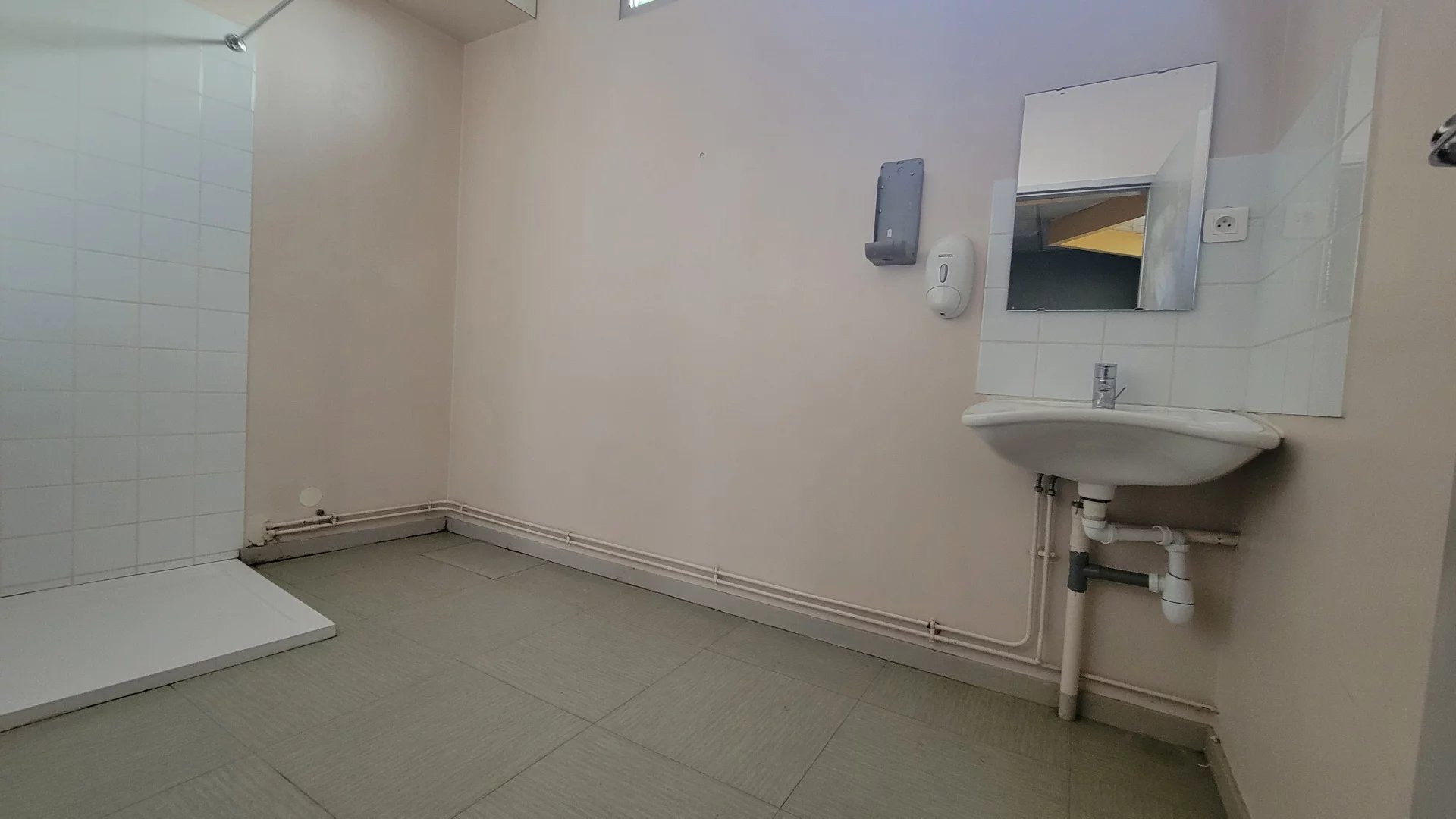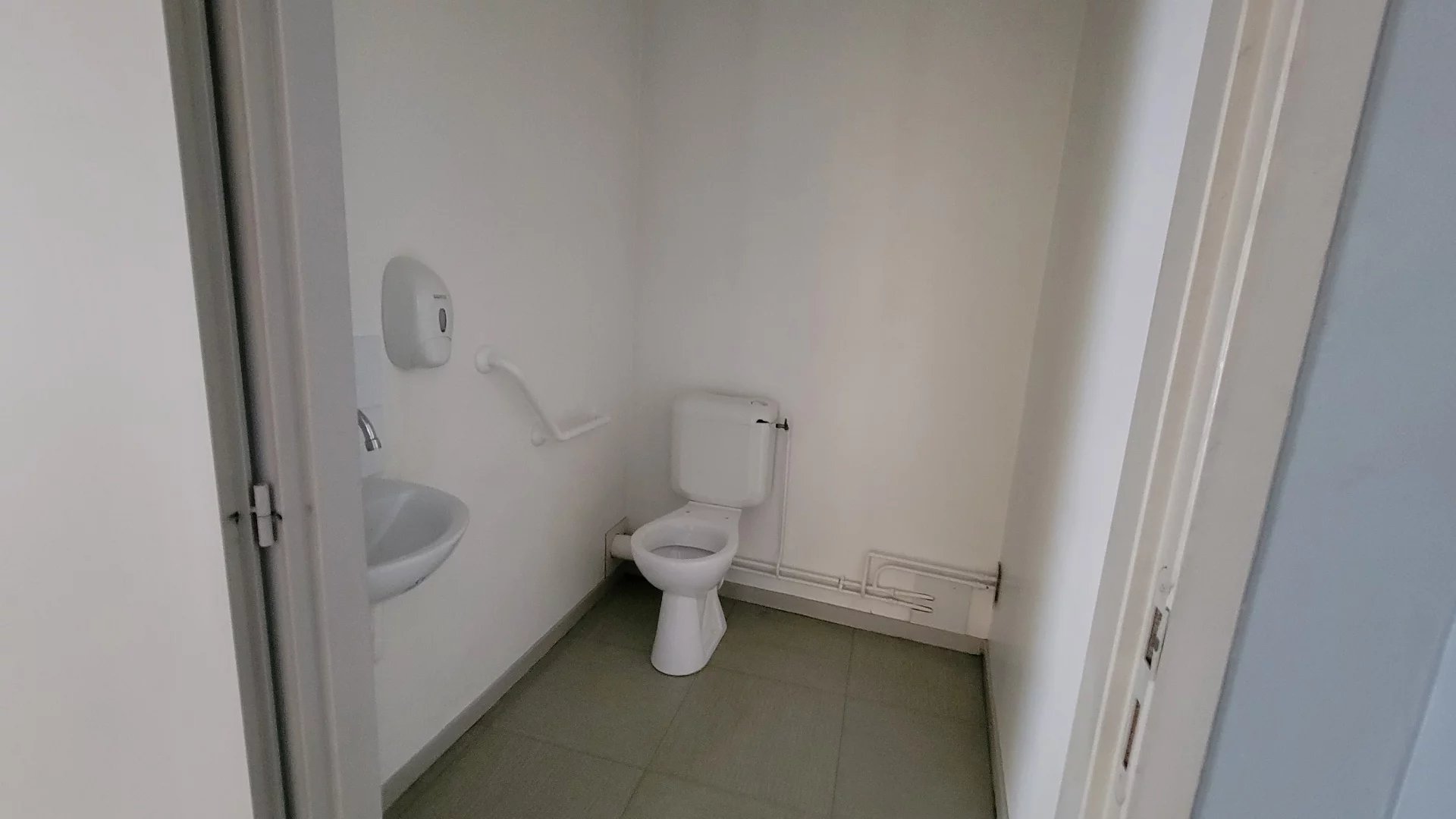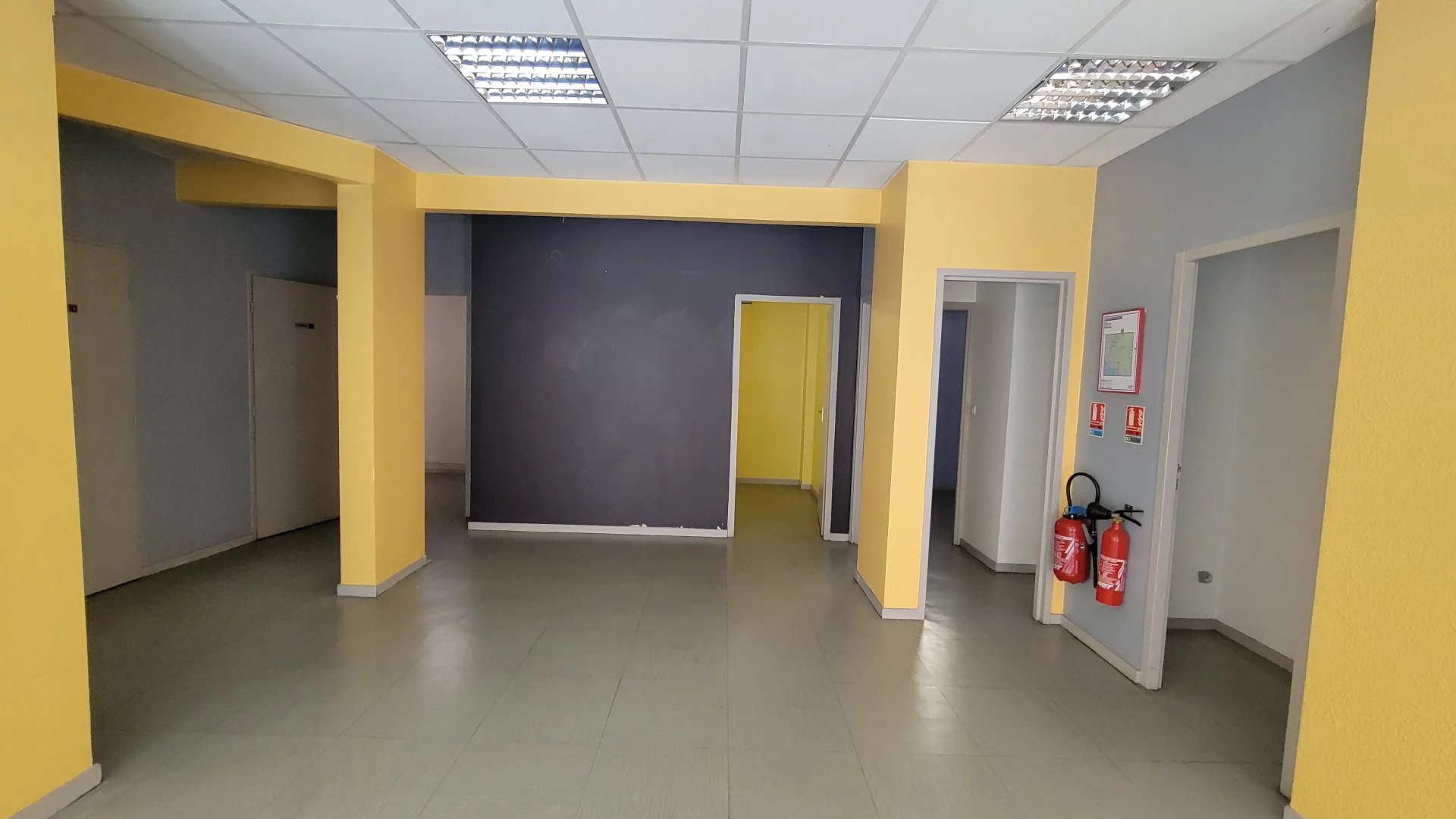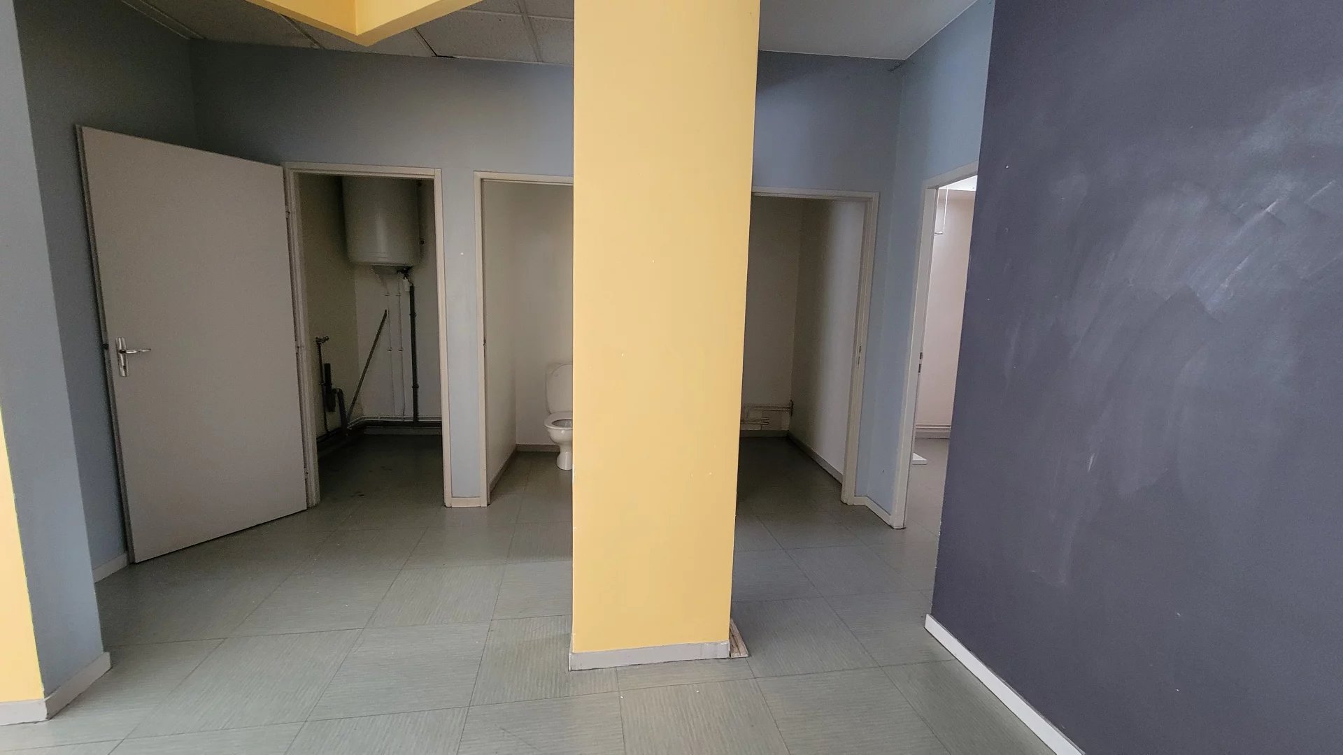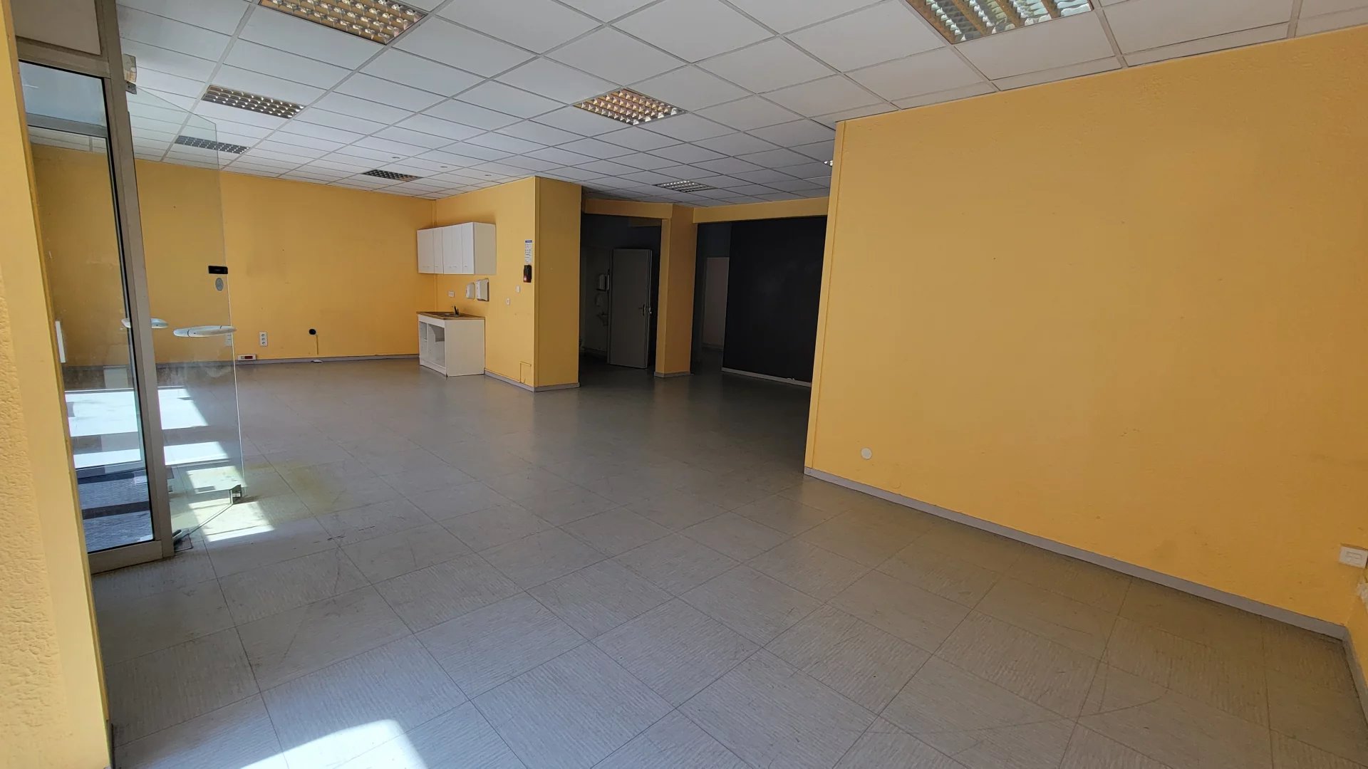 Spacieux local commercial au rdc d'env. 120 m², comprenant un grand espace, 2 toilettes, une pièce buanderie et deux bureaux.